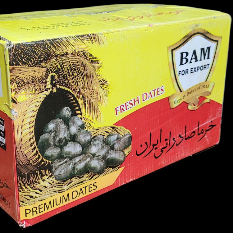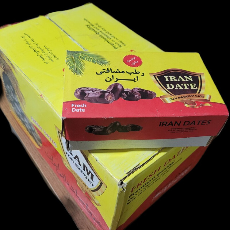 خرمای مضافتی بم. همانطور که در عکس میبینید خرما کیفیت خوبی دارد و وزن هر کارتن 12تایی محصول به طور متوسط 8 کیلوگرم است و 200 گرم نوسان وزن کمتر یا بیشتر دارد.